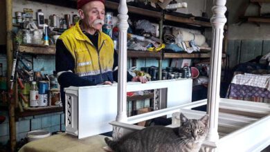 Шість котів живуть на роботі у кропивничанина Володимира Нагорного. Чоловік працює реставратором антикварних меблів у майстерні. Опікується бездомними котами шістнадцять…